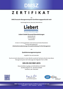 LIebert GmbH | Zertifizierungen | Newsblog | Unternehmensbroschüre | Karriere bei Liebert